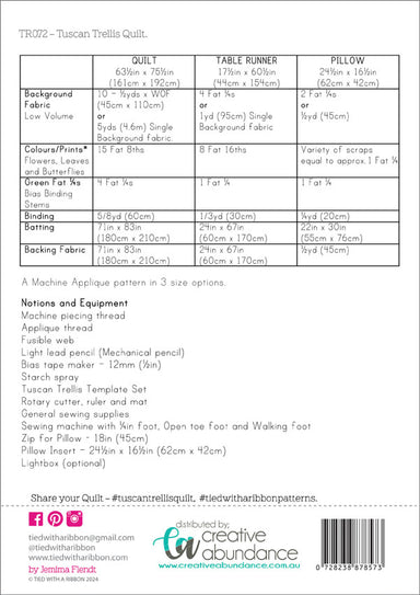 TR072T Create a whimsical garden with the Tuscan Trellis Quilt by Jemina Flendt of Tied With A Ribbon. Inspired by the charm of a Tuscan garden, a...