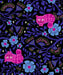 Hello Alice is a collection by Sarah Watts, inspired by Lewis Carrol’s beloved Alice in Wonderland characters. Designs include whimsical creatures, including caterpillars, white rabbits, cheshire cats, and delightfully detailed teacups. The hero print is an evocative illustration of Alice falling down the rabbit hole. The palette is a bold mix of magenta, black and blue which will mix and match beautifully with Sarah’s back catalogue of fabrics