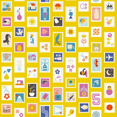 G’day! Greetings! Hello! Hola! Salutations is a Rashida’s ode to hand written letters , notes and stationery. The designs evoke the care and thoughtfulness that goes into letters, as well as the joy and sense of connection felt when we receive one. The designs include new shades of washi tape, pens, supplies found in your top desk draw. Stampy is the hero print with motifs that represent the five founding Ruby Star Society designers and places dear to Rashida’s heart. Salutations will make bright and beautiful quilts and garments, and provides enormous creative scope for the fussy-cutters.